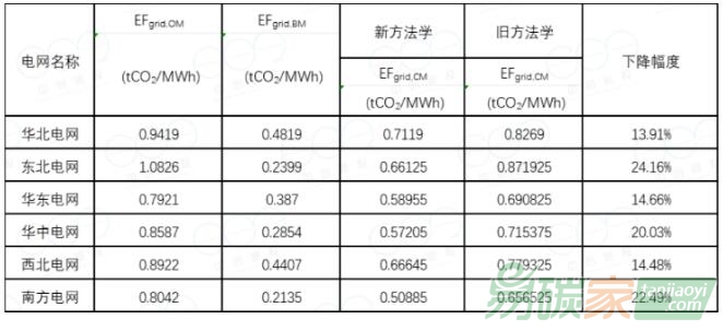 表1 | 新舊方法學(xué)下的區(qū)域電網(wǎng)組合邊際排放因子