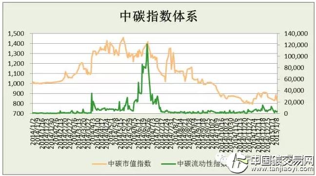 “中碳流動(dòng)性指數(shù)”上周總體成交量較前一周相比有較大幅度下跌,周五收于4032.12點(diǎn)。各交易試點(diǎn)中,北京、天津、上海的成交量較上周均有小幅上漲;湖北、深圳和廣東各自的成交量較前一周有不同程度的跌幅;重慶無交易。