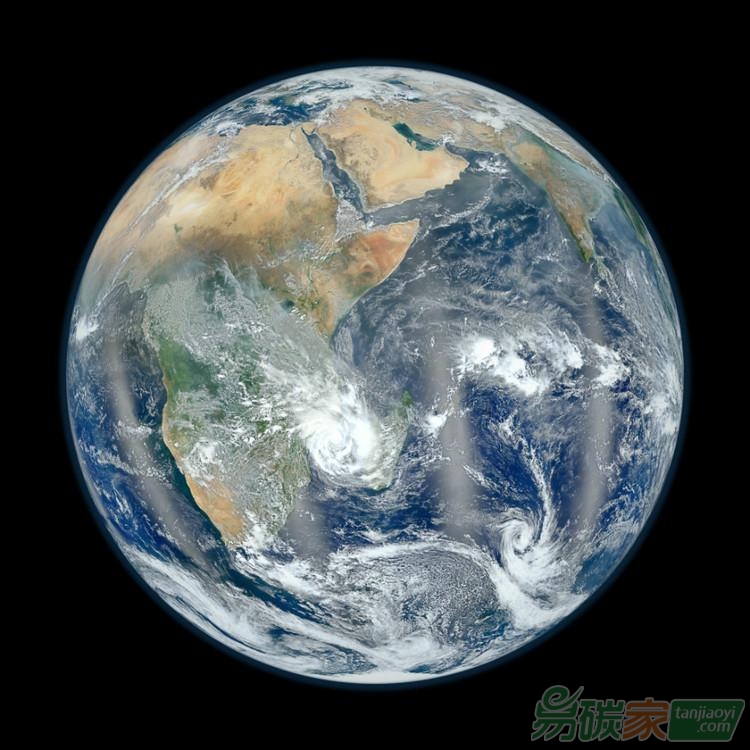 在這張“藍(lán)色大理石”般的畫面中,可以看到地球的東半球,該圖是由NASA的“索米NPP”衛(wèi)星拍下的。
