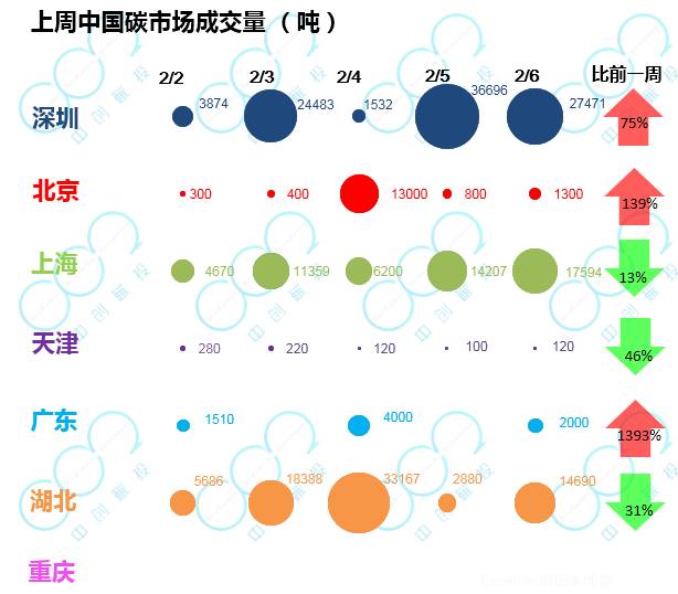 截至上周五(2月6日),中國碳市場二級市場累計成交量1730萬噸,累計成交金額62662萬元。