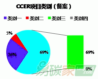 第一類(新項(xiàng)目)和第三類(pre-CDM)所占的比重仍較大,分別為26%和69%。仍無(wú)第四類項(xiàng)目備案成功。項(xiàng)目類型仍是以可再生能源項(xiàng)目為主,其中:風(fēng)電44個(gè),水電40個(gè)、生物質(zhì)發(fā)電項(xiàng)目10個(gè)、光伏發(fā)電12個(gè)。