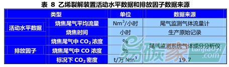 ECO2_裂解(tCO2)=活動水平數(shù)據(jù)(t)*排放因子(tCO2/t)=燒焦尾氣平均流量(Nm3/小時)*燒焦時間(小時)*[燒焦尾氣中CO2體積濃度(%)+燒焦尾氣中CO體積濃度(%)]*標況下CO2密度(t/萬Nm3)*10-4