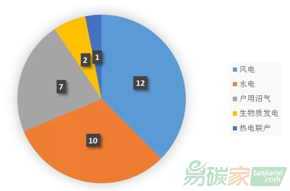 減排交易信息平臺發(fā)布“溫室氣體自愿減排項目減排量備案審核會第四次會議會議通知”。本次會議將于4月29日召開,共有32個項目上會,其中風電項目12個、水電項目10個、戶用沼氣項目7個、生物質發(fā)電項目2個、熱電聯(lián)產項目1個(見下圖),部分項目已經進入到第二監(jiān)測期。
