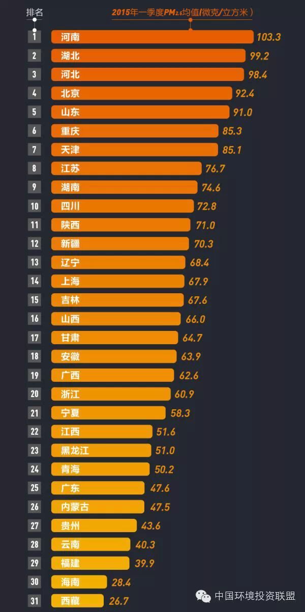2015年第一季度全國(guó)城市PM2.5濃度排行榜