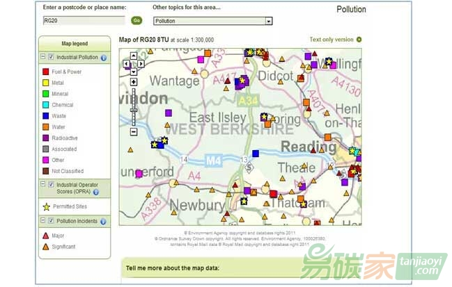 英國環(huán)保局做了一個非常好的網(wǎng)站,這個網(wǎng)站能讓公眾特別方便地查到關(guān)于環(huán)境的信息,而且這些信息都很全面,可以查到環(huán)境質(zhì)量信息、污染源信息和歷史污染源信息,并且通過地圖的形式展現(xiàn)出來,能夠非常方便地查到某個具體位置的環(huán)境信息,而且還有很多類別的信息可供查詢。