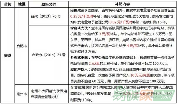 合肥市對(duì)光伏項(xiàng)目的補(bǔ)貼,有度電補(bǔ)貼的形式,但更多的是以初始投資補(bǔ)貼為主。在現(xiàn)有的投資水平下,初始投資的補(bǔ)貼力度還是很大的。毫州市的雖然沒有找到文件原文,但是在財(cái)政部網(wǎng)站有發(fā)布相關(guān)內(nèi)容,所以補(bǔ)貼信息還是靠譜的!