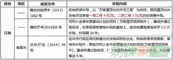 江西省在國家補(bǔ)貼的基礎(chǔ)上,提供了兩種模式的補(bǔ)貼:一種是初始投資補(bǔ)貼,一種是度電補(bǔ)貼,補(bǔ)貼標(biāo)準(zhǔn)確定為0.2元/度電,補(bǔ)貼期20年,補(bǔ)貼時(shí)間挺長的。
