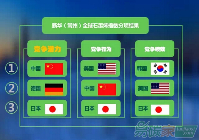 《新華(常州)全球石墨烯指數(shù)報告》是由國家金融信息中心指數(shù)研究院編制,旨在客觀公正地反映樣本國家的石墨烯競爭力水平情況。首份報告選取的樣本國家包括美國、英國,加拿大、德國、澳大利亞、日本、新加坡、韓國、巴西、中國等,基本涵蓋了目前石墨烯產(chǎn)業(yè)發(fā)展較強的主要國家。