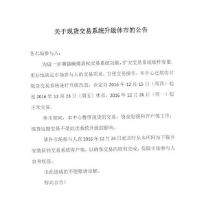 • 關(guān)于湖北碳排放權(quán)交易中心現(xiàn)貨交易系統(tǒng)升級休市的公告