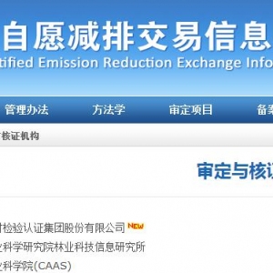據(jù)易碳家從中國自愿減排交易信息平臺了解到,中國建材檢驗認證集團股份有限公司獲得CCER審定與核證資質(zhì),至此,國內(nèi)具備溫室氣體自愿減排交易審定與核證資質(zhì)的機構已達10家?! 「鶕?jù)之前發(fā)改委的備案函中了解到 ...