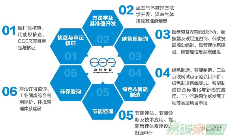 北京中創(chuàng)碳投科技有限公司為企業(yè)提供碳排放核查、用能權(quán)核查、溫室氣體自愿減排(CCER)項(xiàng)目審定與核證等第三方審核服務(wù),以及碳管理咨詢、綠色制造和節(jié)能咨詢等技術(shù)支撐服務(wù),助力客戶破解資源環(huán)境約束難題,實(shí)現(xiàn)綠 ... ...