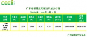 • 【每日碳情】廣東省碳排放配額3月31日成交行情