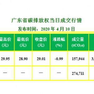 • 【每日碳情】廣東省碳排放配額4月20日成交行情