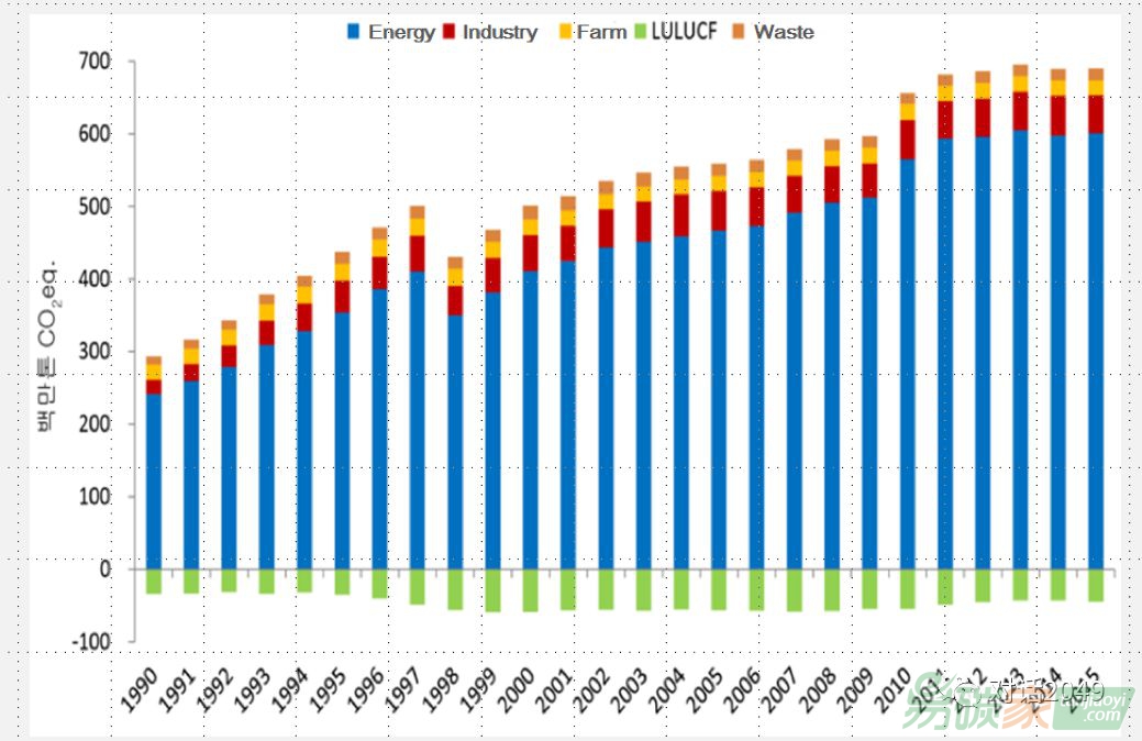 • 2019年韓國(guó)溫室氣體排放量相較2018年減少3.4%,為7.0280億噸