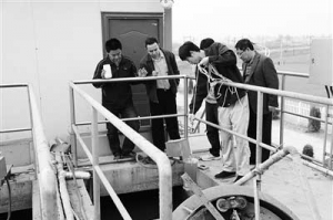 《水污染防治行動計劃》要求所有排污單位必須依法實現(xiàn)全面達標排放,并嚴厲打擊環(huán)境違法行為。對基層環(huán)境執(zhí)法者而言,這將大大促進環(huán)境執(zhí)法工作的開展。圖為環(huán)境執(zhí)法人員正在對一家企業(yè)污水處理情況進行抽樣檢查。( ...