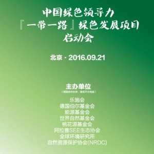 中國綠色領(lǐng)導(dǎo)力--“一帶一路”發(fā)展項(xiàng)目啟動(dòng)會(huì)將于2016年9月21日在北京舉行。