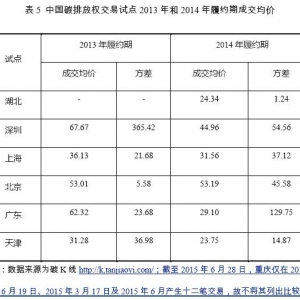 • 中國碳排放權(quán)交易試點2013年和2014年履約期成交均價