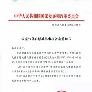 近日,國家發(fā)改委對海峽股權(quán)交易中心(福建)有限公司作為溫室氣體自愿減排交易機構(gòu)予以備案。